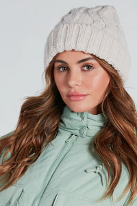 This cable knit beanie has you covered with toasty warmth and style! The cable knit fabric and foldover design make this beanie a stylish addition to any winter look. Complete the look with the matching scarf for a fun winter day!