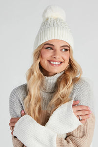 Pearl Me Up Faux Fur Pom Beanie Pearl Me Up Faux Fur Pom BeanieLuxe up your cold-weather style in this cozy beanie featuring faux pearl insets, a foldover hem, and a braided knit design. Complete the look in knee-high boots. Fit & Features - Faux pearl insets