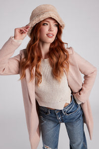 Cozy Vibes Faux Fur Bucket Hat Cozy Vibes Faux Fur Bucket HatCute and cozy, this faux fur bucket hat is a winter staple! It features a short brim and a super soft faux fur material. Style with a button-up coat for a city stroll! Fit & Features - Bucket hat design