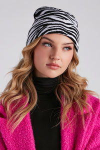 Safari Cutie Zebra Print Knit Beanie Safari Cutie Zebra Print Knit BeanieLook cute for your safari out into the fashion kingdom! This zebra print knit beanie is perfect for adding a fun print to your outfit. Complete the look in a cozy faux sherpa jacket. Fit & Features - Zebra print