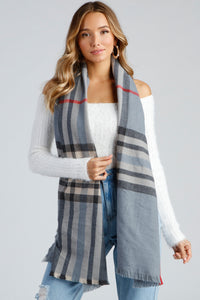 SoHo Plaid Frey Hem Scarf SoHo Plaid Frey Hem ScarfAnother cold day in the city? This plaid scarf will keep you cozy and stylish! Complete the look with a fuzzy sweater and knee-high boots. Fit & Features - Plaid pattern