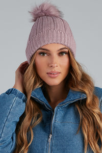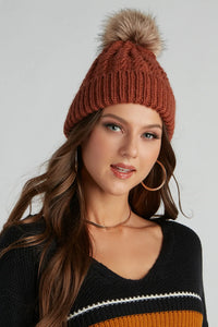 Chilly Days Chunky Knit Beanie Chilly Days Chunky Knit BeanieGet ready for chilly fall days with this adorable chunky knit beanie. The cuffed beanie features a twisted knit design with a cute faux fur pom accent. Style with a belted trench coat. Fit & Features - Cuffed hem