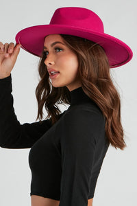 Girl's Trip Fedora Hat Girl's Trip Fedora HatStyle up this hat for an adventure in the city with your girls! The fedora features a structured top and a wide flat brim. Pair with hoop earrings and a crossbody bag. Fit & Features - Structured top