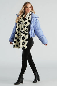 Cute Trendsetter Floral Print Scarf Cute Trendsetter Floral Print ScarfShowcase your cute and trendy style with this adorable floral printed scarf! It features an oblong design with a plush faux fur fabrication and an all-over floral print pattern. Pair with a knit sweater. Fit & Features - Oblong design