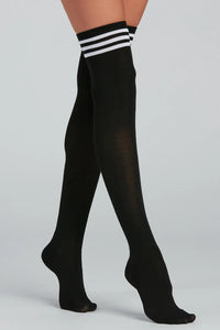 Sporty Babe Over-The-Knee Socks Sporty Babe Over-The-Knee SocksHey babe, showcase a cute sporty vibe with these over-the-knee socks! They hit right above the knee and feature an athletic stripe design at the top. Pair these socks with a mini skirt and heeled booties. Fit & Features - Over-the-knee fit