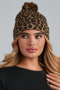 In The Wild Leopard Pom Beanie In The Wild Leopard Pom BeanieLook fierce in the wild in this leopard beanie featuring a pom, fold-over hem, on thick knit fabric. Complete the look in a trendy jacket to keep cozy on cold days. Fit & Features - Pom