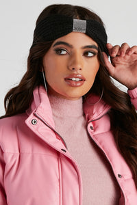 Glam Knit Rhinestone Head Wrap Glam Knit Rhinestone Head WrapKeep glam for the upcoming chilly season in this rhinestone cinch knit head wrap! Complete the look in a puffer jacket. Fit & Features - Rhinestone cinch
