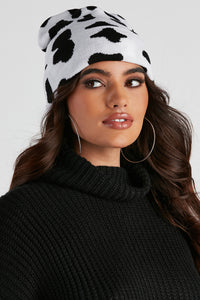 Moo-Tastic Cow Print Beanie Moo-Tastic Cow Print BeanieAdd a fun touch to your outfit with this cow print beanie featuring a soft and cozy design and a foldover cuff. Complete the look in a casual denim jacket. Fit & Features - Cow print