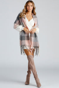 Warm Embrace Buffalo Plaid Blanket Scarf Warm Embrace Buffalo Plaid Blanket ScarfEmbrace the chill and wrap yourself up in this buffalo plaid blanket scarf. It features a noodle fringe and a fuzzy-knit fabric. Style with a cardigan. Fit & Features - Buffalo plaid pattern
