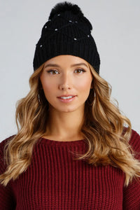 Chill Out Heat Stone Knit Beanie Chill Out Heat Stone Knit BeanieChill out in a cute beanie that brings the sparkle to the season! The beanie features a ribbed knit material, heat stones throughout, and a faux fur pom pom. Complete look with a faux fur jacket and thigh-high boots. Fit & Features - Ribbed knit material