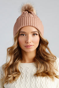 Winter's coming and this beanie is perfect for keeping cozy and stylish! It features a tonal faux fur pom, cable knit design, and a foldover hem. Complete the look in an oversized sweater.