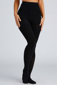 Get more tummy control while shaping your hips and legs with these compression tights! They feature a stretchy high waistband and an opaque nylon fabric. Complete look with a mini skirt and bodysuit.