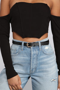 Bring those gorgeous glam vibes to your 'fit with this trendy faux leather belt! It features a round double buckle design with gold metal hardware and rhinestone embellishment. Pair this belt with your fave pair of mom jeans and a graphic tee.