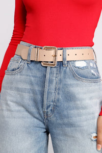 Level up your look with a chic belt that stands out with chic deets! The pack includes three belts in neutral hues, a faux leather material, and a textured U-shaped metal buckle with a textured finish. Pair your belt with high waist jeans and a cute crop top.