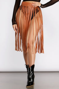 Rockin' Hun' Faux Leather Fringe Belted Skirt