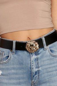 Get fierce this weekend, This belt features a round tongue, with a ball pin closure. The buckle is the star of the show! A lion design. The belt is composed of a faux leather material, and has adjustable sizing.Style Number/Barcode: 07301-0061