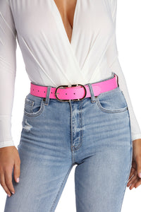 Cinch up your look with a sleek belt to give your outfit a pop! This sleek belt features a narrow faux leather material with a chic mini double O ring buckle to adjust for a custom fit.