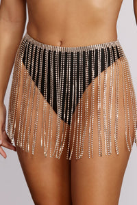 Never be afraid to bling ! This blingtastic belt adds all the sparkle to your ootd. With four rows of rhinestones at the belt, and adjustable lobster clasp closure this silver skirt is composed of rhinestone fringe. Twist and dazzle them all!Style Number/Barcode: 07301-0041