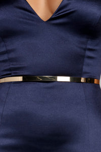 Cinch and highlight your waist with this cute gold belt! It features a flexible flat gold reflective metal, gold chain and lobster clasp closure. Belt is adjustable.