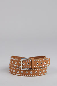 That finishing touch you didn’t know your outfit needed. This faux leather grommet-studded belt brings just the right mix of edge and polish to your everyday look.