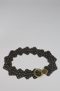 Bring the drama to your waist game—this grommet medallion belt is equal parts edgy and chic with its bold hardware and statement clasp. The easiest way to level up dresses, denim, or oversized fits.