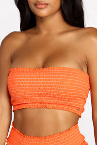 Stay out on the ocean-side all summer long in a swimsuit that brings that tan to life! Smocked and flattering for all body types, this bandeau is here to impress! Don't forget to pick up your matching bottoms to complete your look!