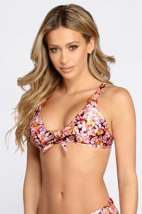 Spring into the floral trend this season in this adorable tie front bikini top! Pair with the matching bottoms for a too cute poolside look!