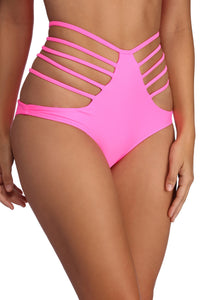 Double up the poolside fun in this pink swim bottom! It features a high waist, multi strap design and a cheeky fit. Don't forget the matching swim top!Model is 5'7" with a 34" bust, 24" waist and 36" hips. She is wearing a size small.