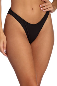 Dare to go low in this bold bikini bottom! It features a low rise waist with cute tie accents, a high cut and a cheeky bottom. Be sure to pick up the matching bikini top to complete your look!RETURNS ACCEPTED ONLY WHEN ALL TAGS AND HYGIENIC PROTECTION ARE INTACT.
