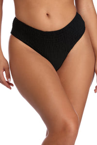 Claim your throne with this smocking beautiful piece! The swim bottom has a mid rise waist paired with a cheeky bottom. The garment is composed of an all over smocked fabric that features an attractive sheen.RETURNS ACCEPTED ONLY WHEN ALL TAGS AND HYGIENIC PROTECTION ARE INTACT.