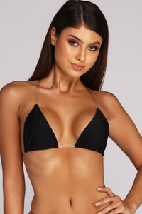Flaunt your curves in an of-the-moment style with classic-chic appeal. Top features elasticized triangle cups and clear PVC halter straps at neck and a single strap at back. Top slips on and fabric offers a fair amount of stretch.