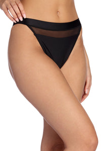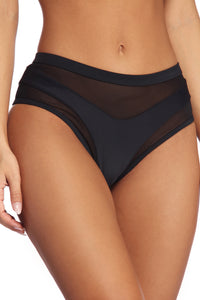 Make a splash in mesh as you bring the heat in this sexy swim bottom! It features a chic black color, a high rise waist, an unlined mesh inset and a high cut with cheeky bottom coverage. Be sure to pick up the matching swim top to lock down your vacay look!RETURNS ACCEPTED ONLY WHEN ALL TAGS AND HYGIENIC PROTECTION ARE INTACT.