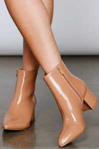 You'll fall head over heels for these super chic booties! They're made from faux patent leather with an almond toe, block heel, and side zipper closure. Wear them with a plaid mini dress and crossbody for throwback vibes.
