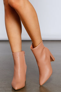 Make a chic statement in this pair of faux leather booties! They're designed in a smooth faux leather with a pointed toe and block heel. Wear them with a sweater dress for the ultimate Fall babe look.