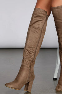 You can walk all over us in these boots honey! They are designed with an almond toe, a tall block heel, an inner zipper and an over the knee reach. They are composed of suede material and pair perfectly with all of your go to chunky sweaters!Style Number/Barcode: 07402-0030