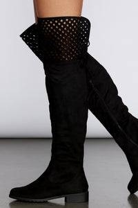 Step out in these edgy faux leather boots for day or night plans! These under-the-knee stunners are designed to be sleek and bold with a platform sole and block heel that adds trendy height to your look.