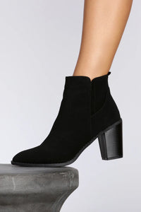 For an everyday easy style, go for a simple pair of booties! They are composed of a nubuck style material, and are designed with a micro hole design, an almond toe, and a block heel that is matching in color.