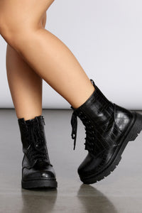 Croc Print Combat Boot