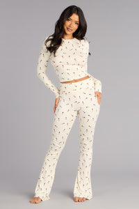 Meet your new crush-worthy cozy. These rose print knit pajama pants feel like Sunday mornings and slow playlists—soft, stretchy, and effortlessly cute. Perfect for lounging in or layering up for your coffee run. Pair with the matching top.