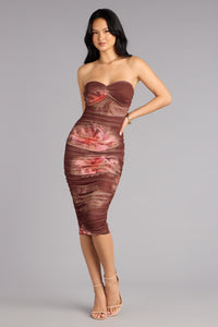 Flirty, fitted, and just the right amount of romantic. This floral mesh midi tube dress hugs every curve with an effortless allure that speaks for itself.