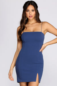 Step out in satin with our beautiful Beatrix. She features a square neckline, tank style straps and a form fitting silhouette. Her skirt flows with a floor sweeping silhouette, and features a sexy side slit. She is composed of a satin-like material that offers moderate stretch and offers a full lining.