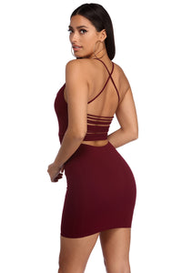 Slay in sassy straps as you head out with your girls for a memorable night out! This sizzling bodycon features a sleeveless bodice, a scoop neckline and narrow straps that lead to a sexy cross back design. The back features a cascading multi bar back strap accent that shows off more than a hint of skin! Dress is composed of a crepe fabric that offers a moderate stretch. Dress is lined with a smooth thin knit fabric.Model is 5'7" with a 34" bust, 24" waist and 36" hips. She is wearing a size small.