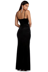 Special OccasionElegant with a touch of sass. Our Jasmine dress invokes glamour with its velvet make, while adding a seductive element with the deep V neckline, sexy spaghetti straps and enticing high front slit. Dress is composed of a velvet fabric that offers a form hugging fit with a moderate stretch. Includes a smooth knit lining.