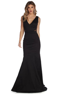 Make an impression they will never forget in the wowing Paige dress! She radiates elegance with her V neckline with padded cups and princess seams. Her slim fit bodice leads to a dramatic floor length taffeta skirt accented with a high side slit and hidden side pockets. Dress is composed of a lined combination crepe and taffeta fabric that offers a form hugging fit with a moderate stretch.