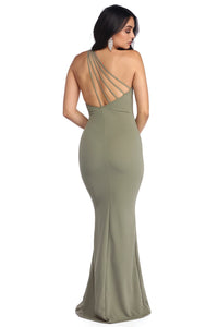 Special OccasionShow them a little shoulder action as you slay your next event in our jaw dropping Cecilia dress! She features, a one shoulder neckline, a tank strap and an asymmetrical narrow multi strap bar back design. Her bodice features subtle princess seams that lead to a sleek sheath skirt that graces your every step! She is composed of a lightweight crepe fabric that offers a form hugging fit with a moderate stretch. Dress includes full knit lining.
