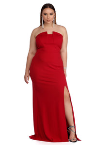 Special OccasionKatlyn is a vivacious lady in red that makes your bold personality shine through! She has a strapless neckline flexible wire around the bust, a high waist seam, an exposed back zipper, and a high leg slit. Katlyn is compsoed of a crepe fabric that offers a moderate stretch.