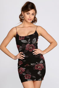 A stunning floral print makes this an eye-catching dress! We're loving the flowy skater skirt that makes you want to keep spinning!