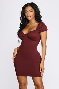 Feelin' Slick Satin Puff Sleeve Mini Dress
