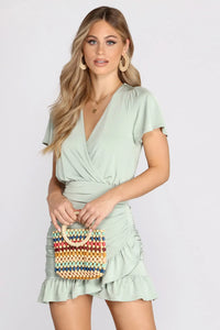 You'll be a major flirt in this absolutely adorable ruffle hem mini! The dress is perf paired with some wedges for a spring day out!