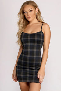 Oh-so-chic, this plaid mini dress is a staple you can take into the fall season! It features a trendy square neckline, spaghetti straps, and a short, curve-hugging silhouette. Style this knit dress with clear heels and a faux leather jacket.